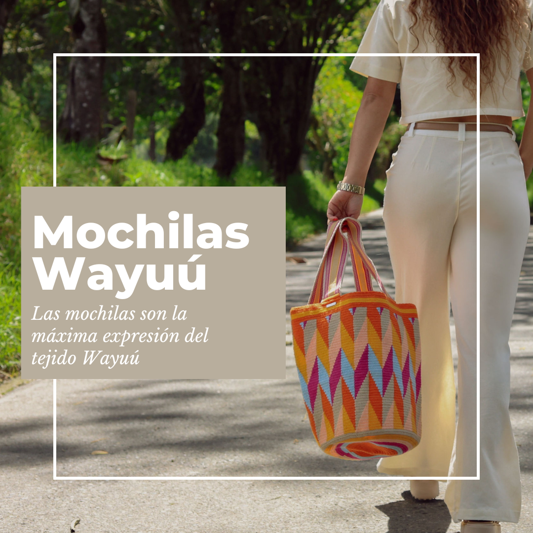 Las mochilas son la máxima expresión del tejido Wayuú, etnia localizada en la Península de la Guajira. Son fácilmente reconocibles por sus colores vivos y diseños, hechas 100% a mano en Algodón Silvestre o hilo de crochet, la elaboración de cada pieza puede tardar aproximadamente 20 días. Los motivos tradicionales del tejido wayuu son los kaanas, son la expresión más auténtica del modo como los Wayuú interpretan y representan los elementos del mundo material que los rodea y su vida cotidiana, para así crear figuras llenas de gran simbolismo. Estas composiciones geométricas se repiten en todos sus tejidos, cada uno de los cuales recibe un nombre que expresa sus pensamientos.ver ahora